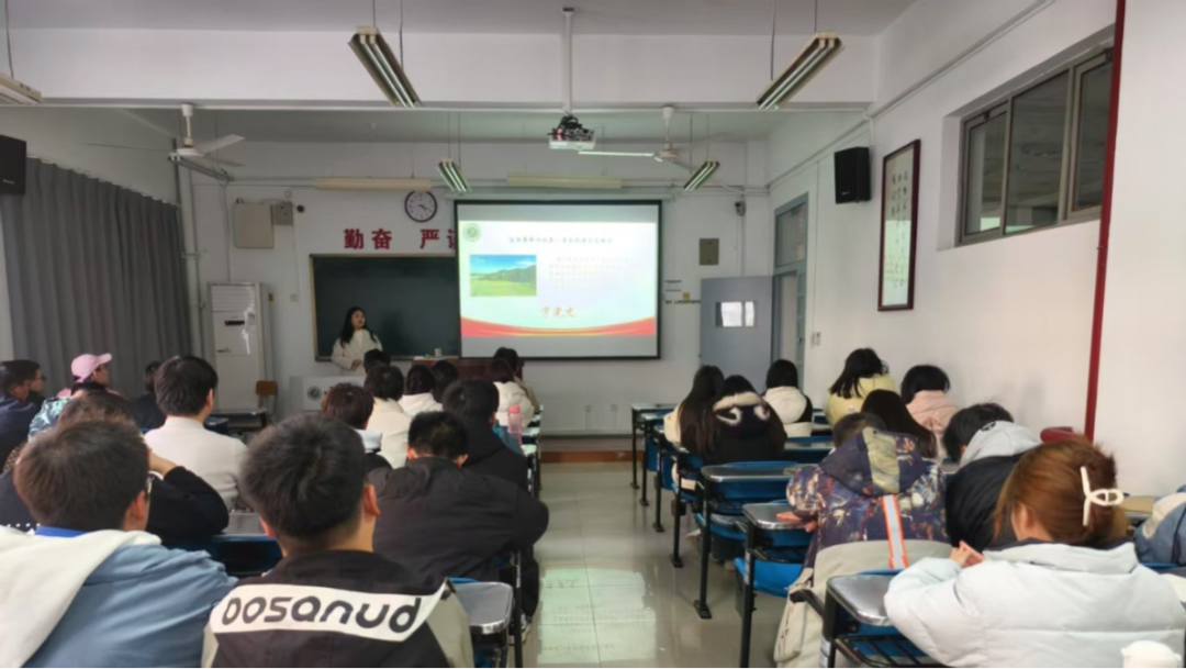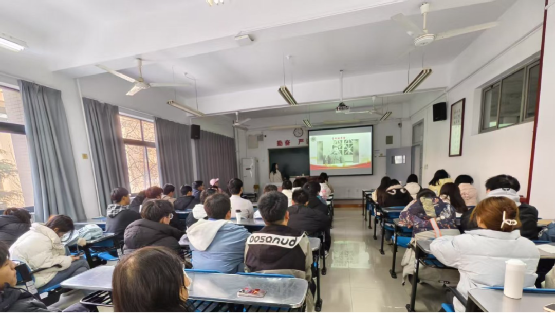 随后,主讲人饱含深情地讲述革命先辈们在延安的故事。从毛泽东等老一辈革命家在窑洞中彻夜长谈、谋划革命蓝图,到“自己动手,丰衣足食”大生产运动中军民齐心的身影,一个个鲜活事例,让先辈们艰苦奋斗、无私奉献的精神跃然眼前。先辈们为了民族独立和人民解放,在艰苦环境中坚守信念、顽强拼搏的精神,深深打动了在场的每一位同学。