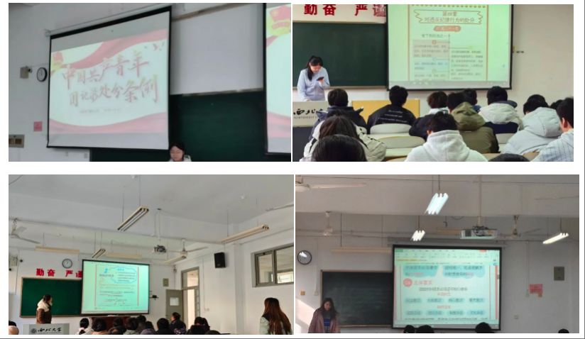 2023级各团支部重点学习了团纪处分运用规则,通过介绍各类典型案例,分析各类情形,明确了在不同情况下的处分规则。团员们通过对具体案例的具体分析,树立起了对团纪的全新认知,认识到团纪处理的科学性、严谨性,和提高自身纯洁性,责任感的重要性。团纪学习对团员们树立正确的价值观念,深刻理解中国特色社会主义的核心观念有着重要作用,激励了团员们做一个有理想,敢担当,能吃苦,肯奋斗的中国青年。