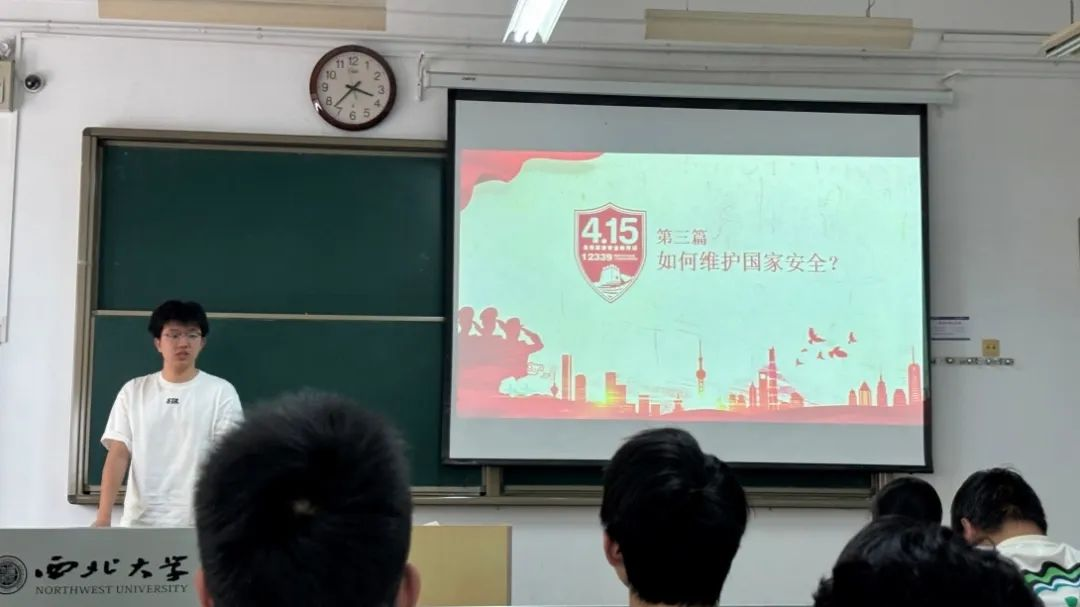 2023级各团支部则注重对全民国家安全教育日进行介绍,各团支部书记带领团员青年们学习了总体国家安全观、国家安全相关知识、国家安全教育警示案活动内容例等内容,重点结合党的二十大关于维护国家安全的总体部署,引导团员青年学习了解习近平总书记关于总体国家安全观的重要论述。然后开展了重点考察反间谍、数据安全等常识的国家安全知识抢答环节,带领各团员了解国家安全相关知识和学习。最后,各团支书介绍了公民在维护国家安全中的权利与义务,倡导所有同学要承担起自己的责任为维护国家安全做出行动,以青春力量筑牢国家安全防线。