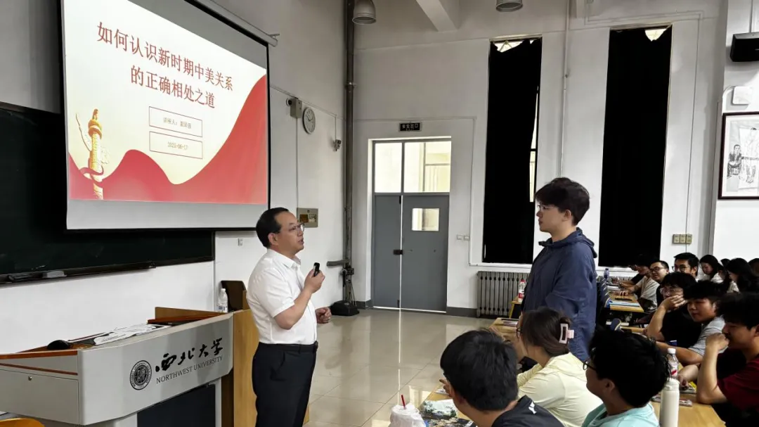 讲座进程中,董老师抛出“你理解的中美关系是怎样的”这一问题,瞬间点燃了现场同学们的思维热情。大家踊跃发言,各抒己见。有的同学立足当下现实,深入剖析了中美在科技领域合作与博弈并存的复杂局面;有的同学则从青年视角出发,满怀憧憬地畅谈对中美人文交流以及未来互动的期待。不同观点相互碰撞、交融,让同学们对中美关系的理解愈发立体、生动。